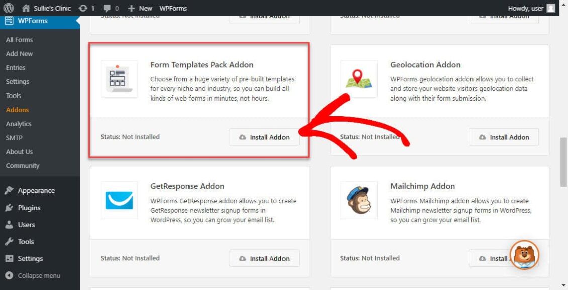 To do this, go to WPForms » Addon and find the one labeled Form Templates Pack Addon.